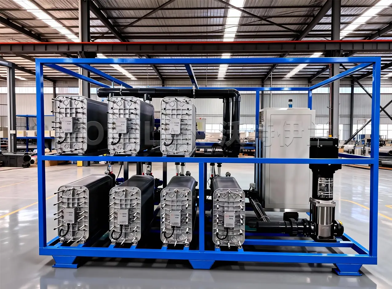 设备主要由以下几个关键组成单元构成。预处理系统,包括多介质过滤器、活性炭过滤器、精密过滤器等,其作用是去除水中的大颗粒悬浮物、胶体、有机物、余氯等杂质,降低水的浊度和污染指数,为后续的反渗透处理提供良好的进水条件,保护反渗透膜元件免受污染和损坏。反渗透膜组件,是设备的核心处理单元,由两级反渗透膜元件组成,一级反渗透膜去除水中大部分的盐分和杂质,二级反渗透膜进一步深度处理,确保产水水质达到高纯度要求。反渗透膜采用美国陶氏、海德能等国际知名品牌,具有高通量、高脱盐率、长寿命等优点。高压泵,为反渗透膜组件提供足够的进水压力,克服膜的渗透压力和水流阻力,使水分子能够顺利通过反渗透膜,实现水与杂质的分离。控制系统,由 PLC 控制器、触摸屏、传感器等组成,实时监测设备的运行参数,如压力、流量、电导率、pH 值等,并根据设定的程序自动调节设备的运行状态,实现设备的智能化控制和管理。清洗系统,包括清洗水箱、清洗泵、精密过滤器等,当反渗透膜表面出现污染时,通过清洗系统对膜元件进行化学清洗,去除膜表面的污染物,恢复膜的性能,延长膜的使用寿命。