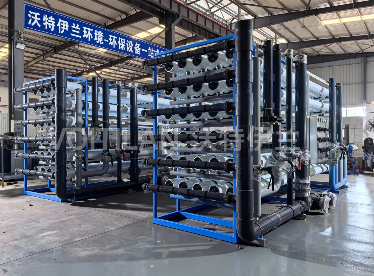 沃特伊兰双级反渗透纯水设备具有多项显著特点。高效节能,采用低能耗高压泵和优化的流道设计,相比传统纯水设备能耗降低 20% 以上,大大减少企业的运行成本。高脱盐率与稳定产水,双级反渗透工艺结合高精度反渗透膜,对水中盐分、有机物、微生物等杂质的去除率均达到行业领先水平,确保产水水质长期稳定可靠。自动化程度高,配备先进的 PLC 控制系统和人机界面,可实现设备的全自动运行,包括自动冲洗、自动加药、故障诊断与报警等功能,降低人工操作强度,提高管理效率。模块化设计,设备各组件采用标准化模块化结构,安装便捷,维护方便,可根据用户的实际需求灵活组合和扩展,适应不同的安装空间和用水规模。抗污染能力强,选用抗污染性能优异的反渗透膜元件,并结合科学的预处理工艺和清洗方案,有效延缓膜污染,延长膜元件的使用寿命,减少维护成本。
